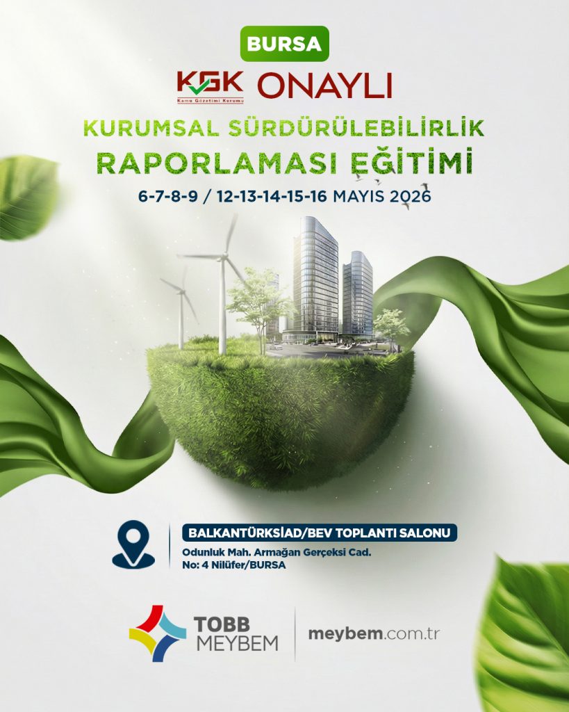 Şirketimiz; Kamu Gözetimi Kurumu (KGK) tarafından 19.12.2024 tarihli 2024-81 Sayılı “Kurumsal Sürdürülebilirlik Raporlaması Eğitimlerine İlişkin Akreditasyon Talebi Değerlendirme Duyurusu” uyarınca Kurumsal Sürdürülebilirlik Raporlaması Eğitimlerini düzenlemek üzere akredite edilmiştir. Bu doğrultuda … BURSA 2026 okumayı sürdür